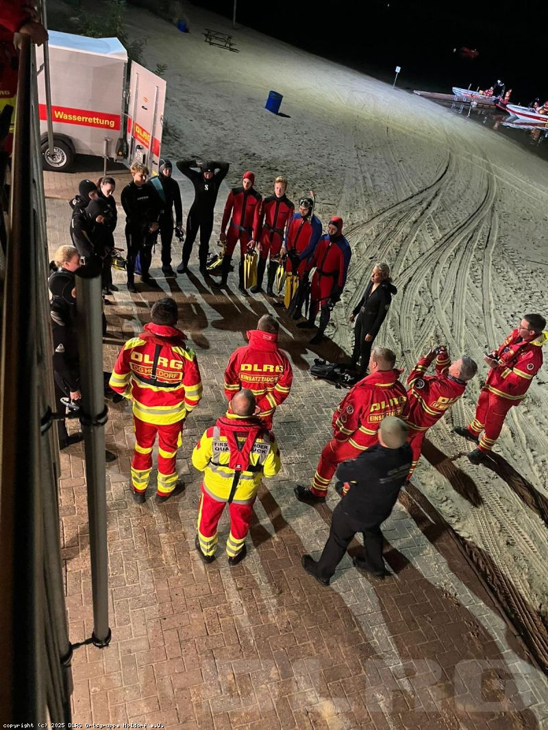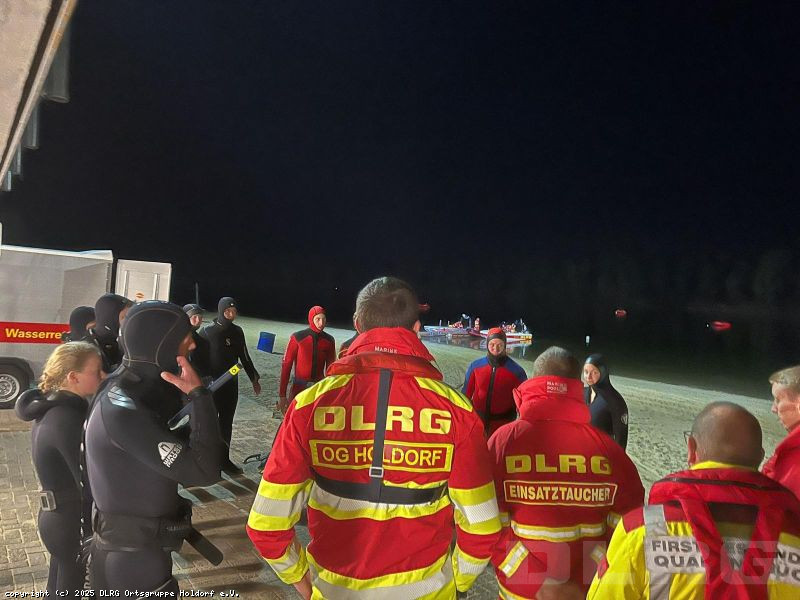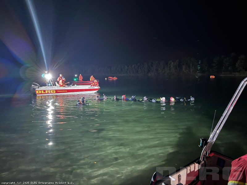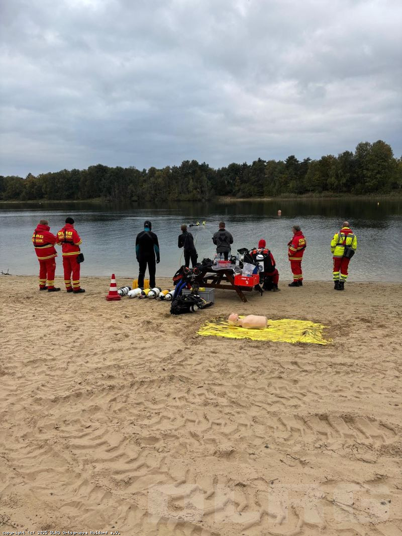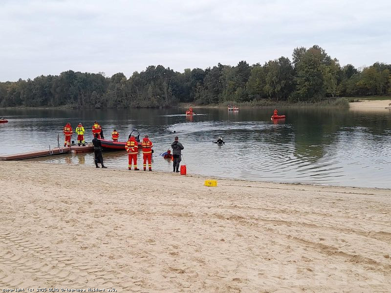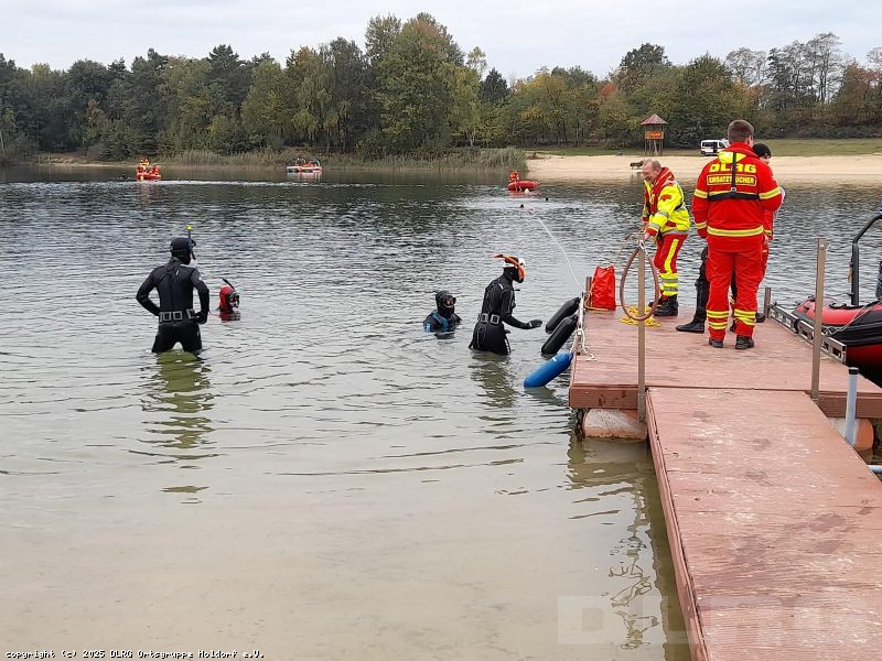 Am 10.10 und 11.10.2024 fand wieder die jährliche Einsatztaucherprüfung des Landesverbandes Niedersachsen in Holdorf statt. Das Streckenschwimmen am 10.10 war Abends im Heidesee. Dies wurde vom ESP Vechta (plus Kollegen aus Bramsche und Friesoythe) mit 3 Booten abgesichert. Zusätzlich war das DRK Vechta zum Ausleuchten des See vor Ort. Am Samstag mussten die 15 Prüflinge noch Strecken-, Tief- und Zeittauchen + Rettungsübung, Suchübung und Arbeiten unter Wasser absolvieren. Diese Übungen wurden von uns am Freitag aufgebaut, am Samstag abgesichert und am Samstag / Sonntag wieder abgebaut.