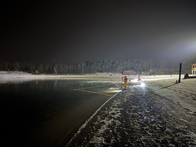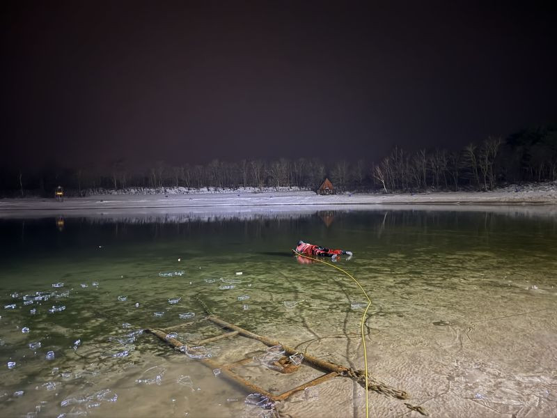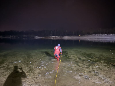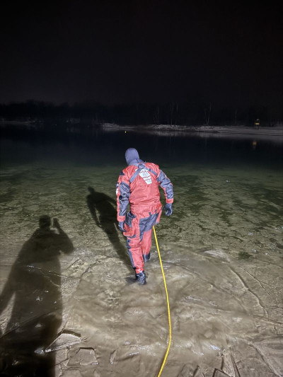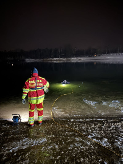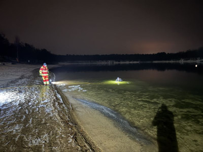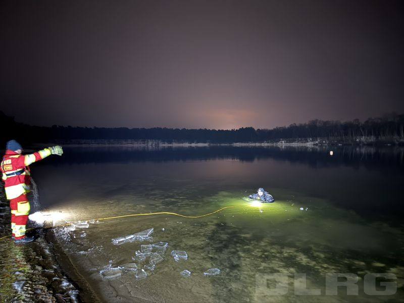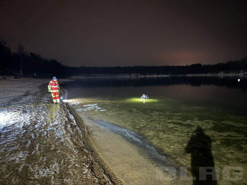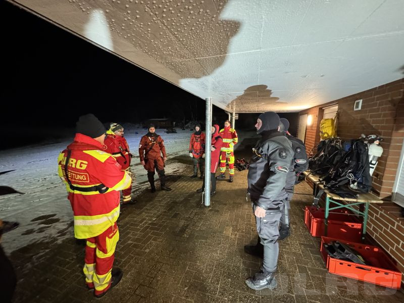 Die Eisdecke hatte eine Stärke von ca. 2,5 cm und war nicht tragfähig. Das Training wurde daher ausschließlich unter verschärften Sicherheitsmaßnahmen und mit entsprechender Sicherung durchgeführt. Ziel war die Ausbildung und Festigung von Abläufen beim Tauchen unter Eis sowie die Sensibilisierung für die erheblichen Gefahren nicht freigegebener Eisflächen.